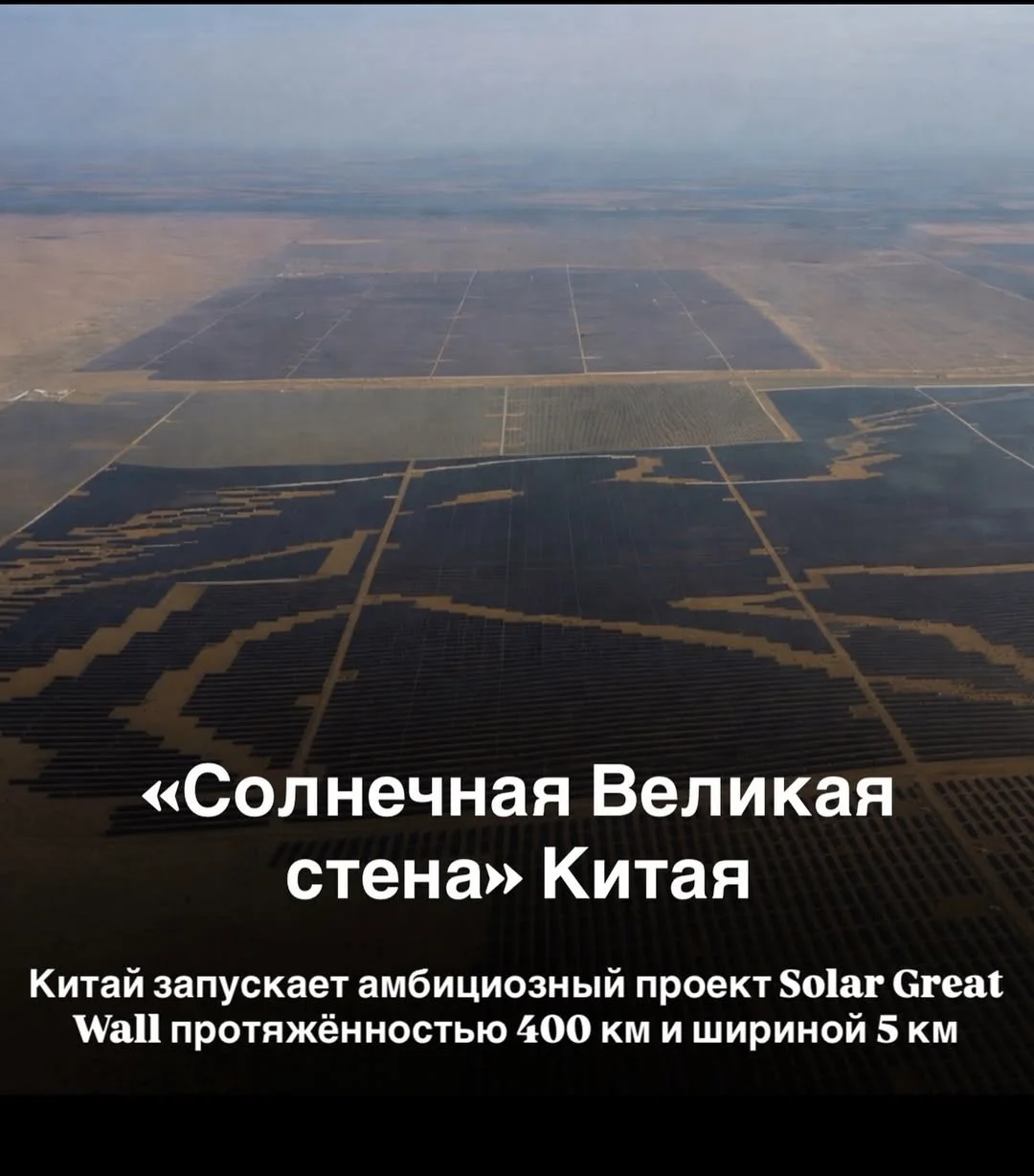 Китай, в свою очередь, делает ставку на солнце. Проект, получивший неофициальное название «Солнечная Великая стена», представляет собой гигантский массив солнечных панелей протяженностью около 400 километров и шириной до 5 километров. Он строится в засушливых регионах страны и призван не только вырабатывать чистую энергию, но и бороться с опустыниванием. Масштаб проекта таков, что его можно будет увидеть даже из космоса, а вырабатываемой энергии хватит для питания целых мегаполисов.