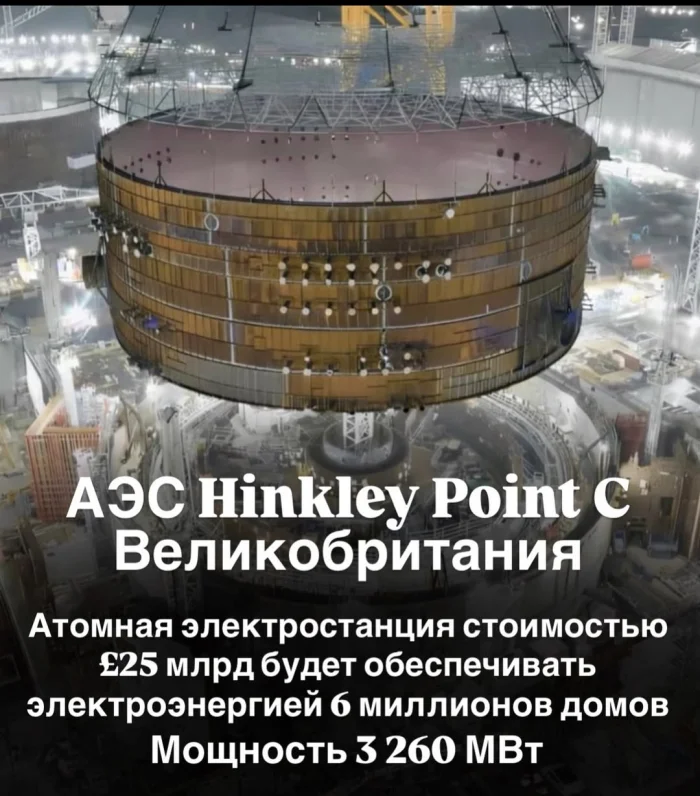 Одним из самых амбициозных энергетических проектов Европы стала атомная электростанция Hinkley Point C в Великобритании. Это первая новая АЭС в стране за последние десятилетия. Ее стоимость оценивается примерно в 25 миллиардов фунтов стерлингов, а установленная мощность составит около 3 260 МВт. Станция сможет обеспечивать электроэнергией до шести миллионов домов, значительно снижая зависимость страны от ископаемого топлива и импорта энергии. Проект стал символом возвращения атомной энергетики в Европу как надежного источника низкоуглеродной энергии.