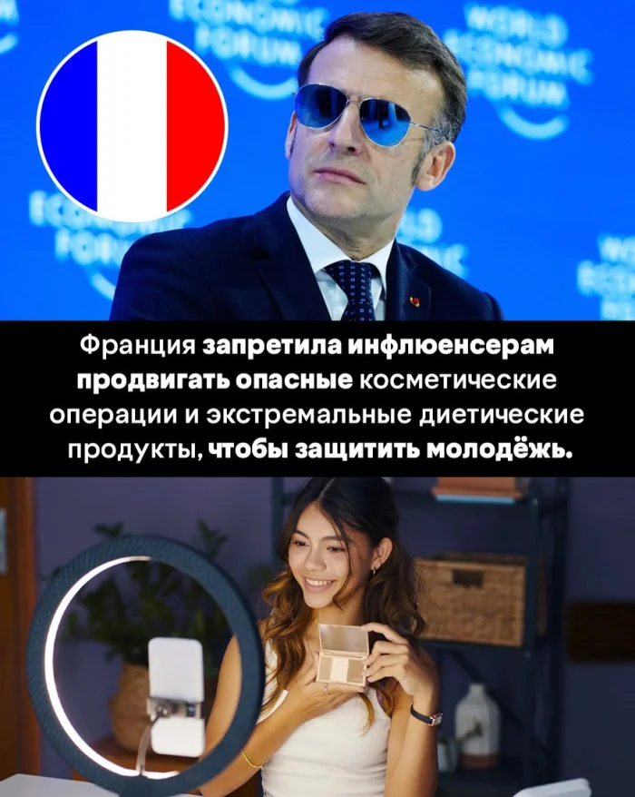 Во Франции на законодательном уровне ограничили деятельность инфлюенсеров, запретив им продвигать опасные пластические операции и экстремальные диеты. Власти сделали акцент на защите подростков и молодых людей от навязывания нереалистичных стандартов внешности и вредных для здоровья практик. Теперь блогеры обязаны маркировать отретушированные фото и несут ответственность за рекламируемые медицинские услуги.