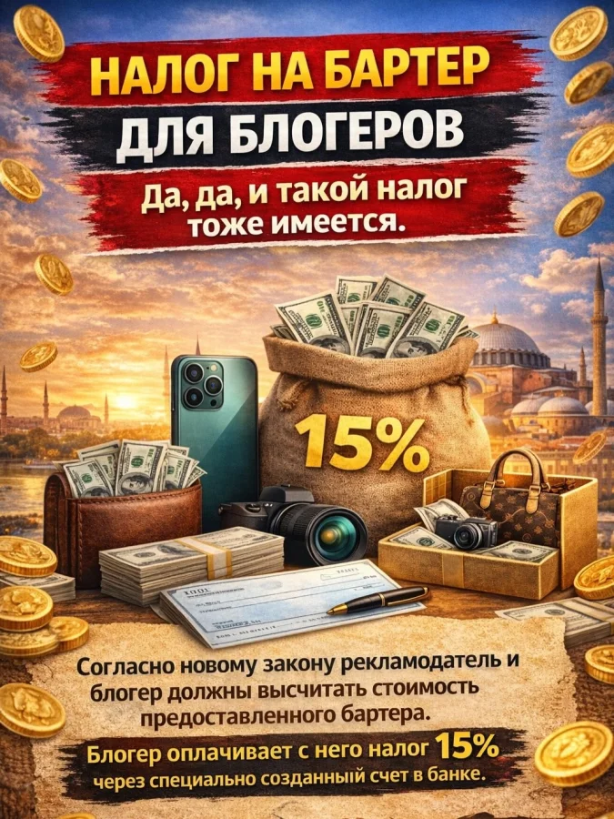 Отдельного внимания заслуживает современный тренд — налоги для блогеров. В Турции инфлюенсеры могут платить фиксированные 15% через специальный банковский счёт. Причём учитываются не только деньги, но и бартер.