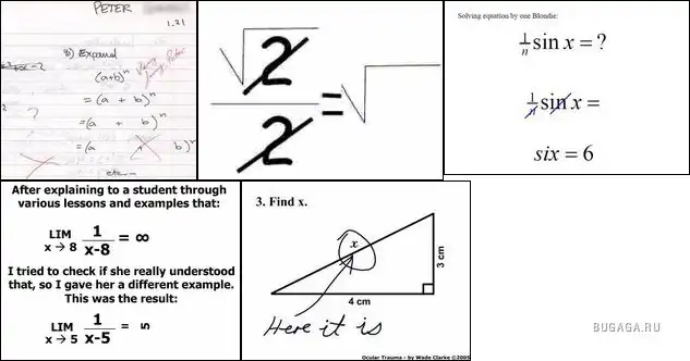 Вот вы ржете, а сами-то лучше что ли. На экзаменах не знаешь то ли смеятся, то ли плакать. Когда на защите диплома не могут нарисовать синус - это знаете ли...