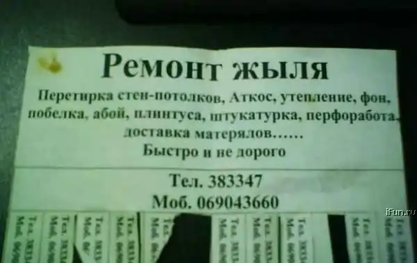 Ремонт ЖЫЛЯ наверное такой же, как и объявление!