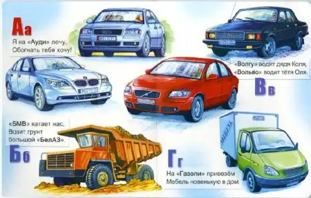 Хорошо хоть детям кроме букв не надо еще и про марки машин объяснять