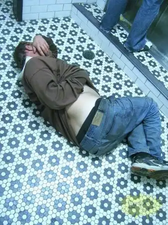у мну на днюхе такая же картина была :)) некий матвей (FeNiX) так *п ужрался что потом с мусоропроводом в обнимку часа 2 валялся ;]]