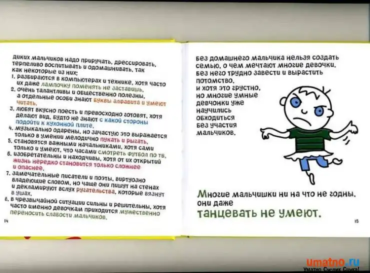 почему в этой книге не сказали хотя бы одной положительной черты мужского пола?это издевательство и оскарбление