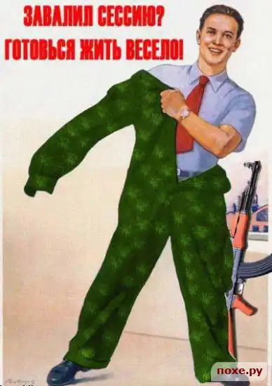 завалил сесию? ))) у нас так препод над одним парнем вечно шутил, парень редко его занятия посещял, он все спрашивал, что делаеть, к армии готовится?