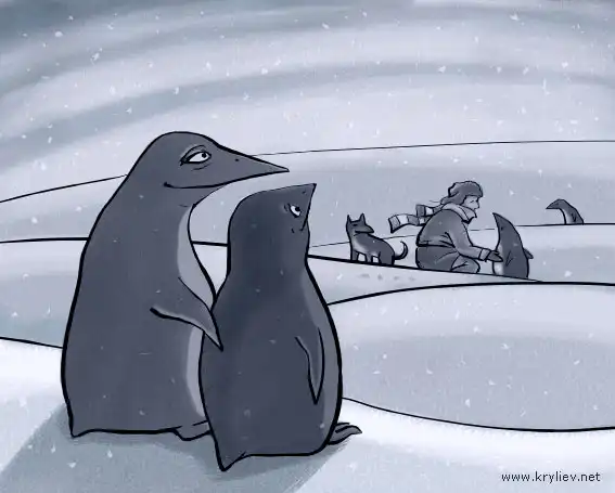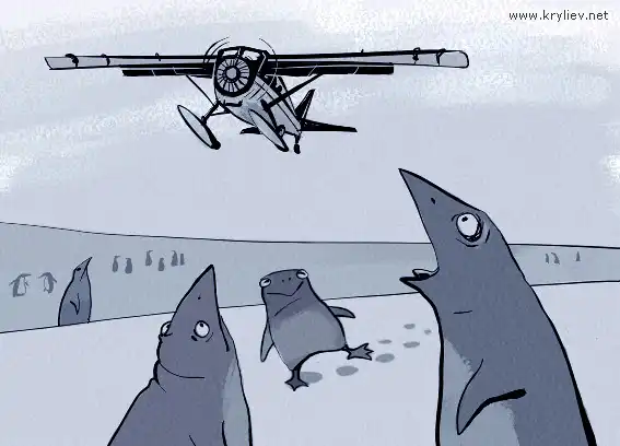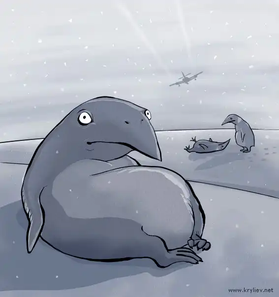 И пингвины, которым, обычно, в небе смотреть не на что, задирают головы и трагически падают на спину. Не все, конечно, а только самые тупиковые особи. Самые жирные из самых тупиковых после этого не могут самостоятельно подняться.