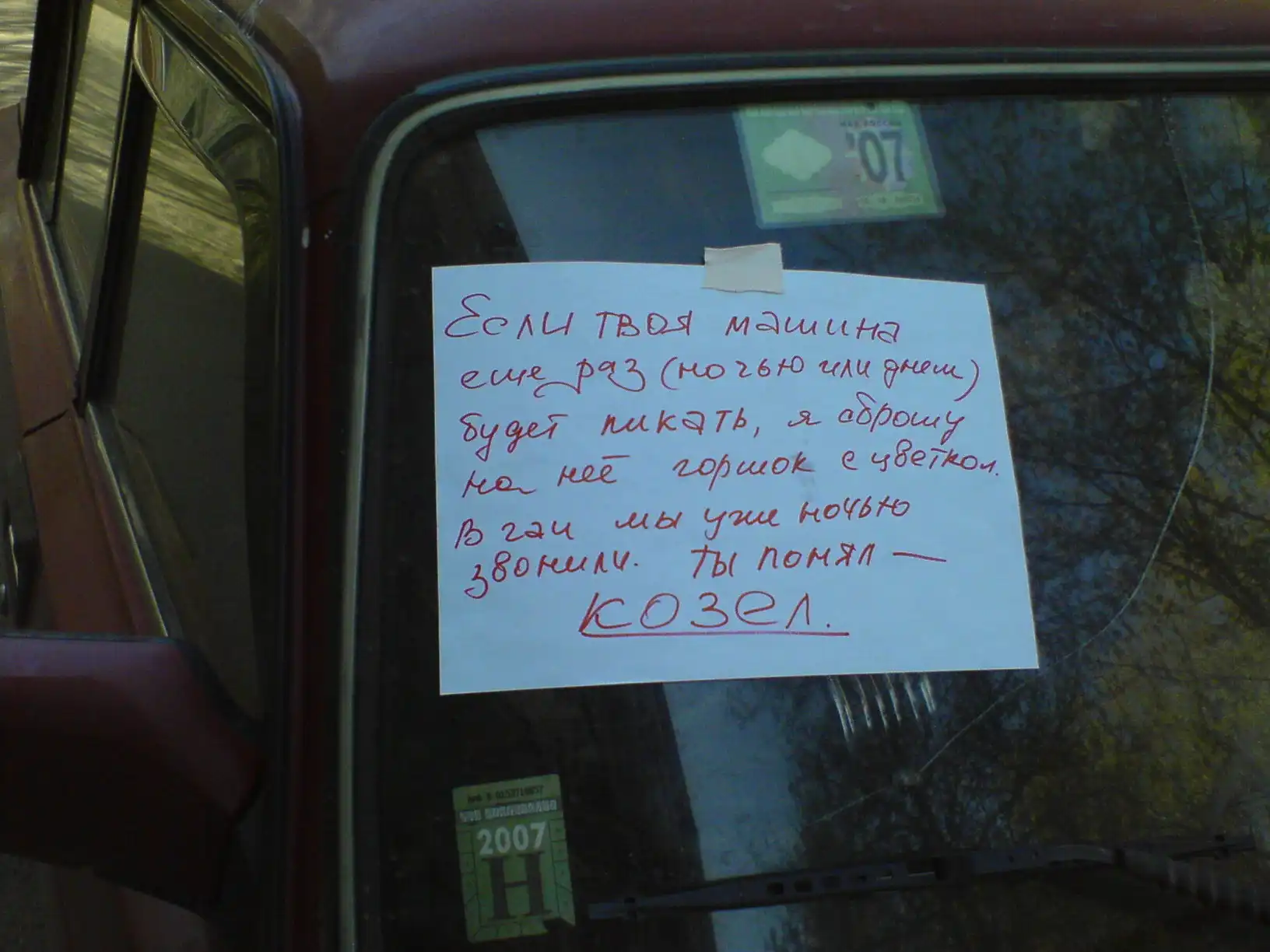 у меня под окном калымага пикала так на неё кто-то парашу вывалил