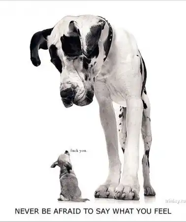 вспомнилась басня Крылова, " Ах Моська, как она сильна, что лает на слона")) Правда не на слона, а на хз какого пса!