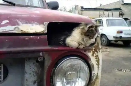 кота в машине придавило - такой вид забавный типа "а это еще что за хрень на меня наехала?!"