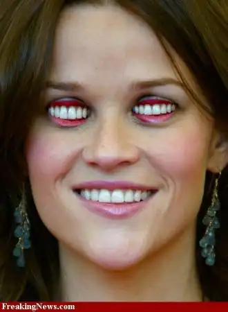 Что интересно, это то, что каждому подходит именно его рот вместо глаз. Подставь чей-нибудь чужой рот, уже не то будет! А так, даже особо и незаметно, что глаз нет!