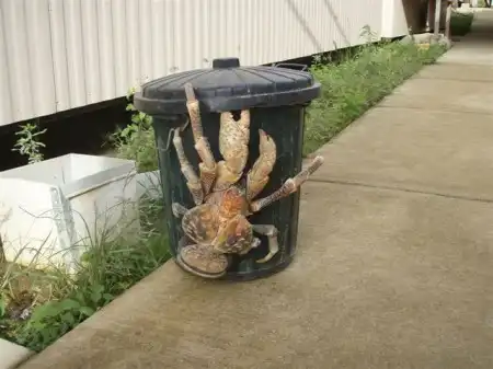 рак по мусорным бачкам лазиет....видать жизнь его не особо балует