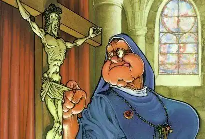 Всё клёво и смешно, но картинка с распятием - это никуда не годиться...