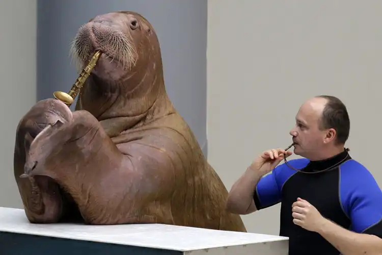 на первой моржиха которыю русский дрессировщик на сексофоне играть научил