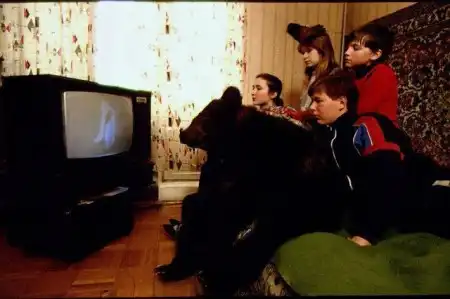Медвед прикольно телевизор смотрит