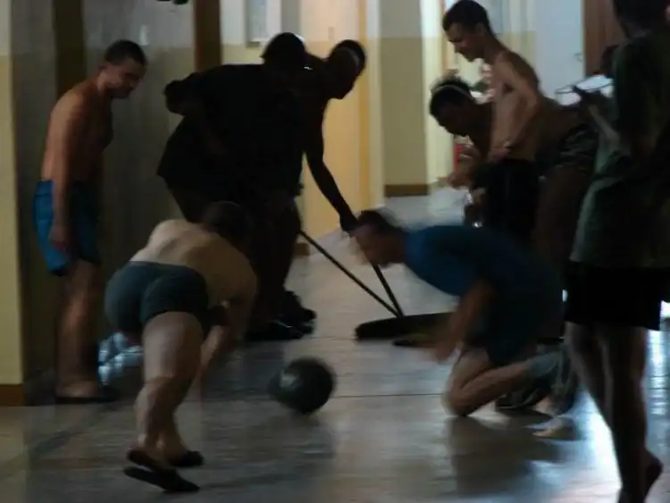 Как я понял, это им так выправку "правильную" делают. Между ними ходят офицеры, и хлопают по спине или ещё что...проверяют вообщем.