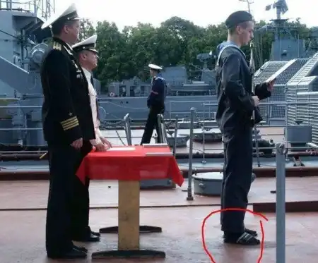 судя по всему на последней присяга, и скорее всего боец молодой и просто ноги себе стер.. у нас чек 10ть на присяги в тапках было;)