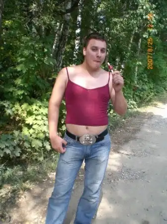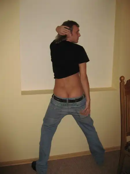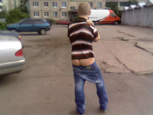 Евгений - ярый поклонник стиля Тимати, приспустил штанишки, а труселя пододеть забыл.