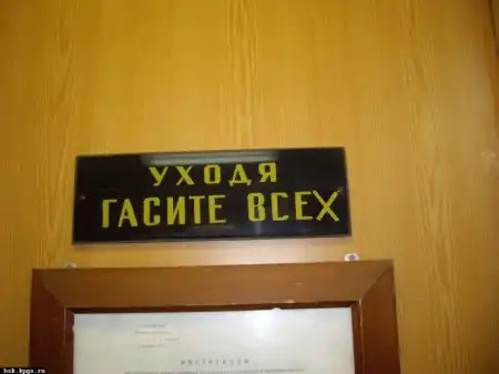 У нас над выключателем тоже табличка "Уходя гасите всех"