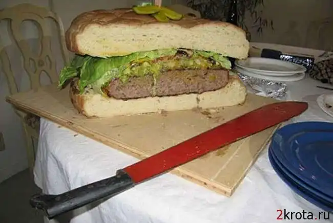 2 месные котлеты гриль, специальный соус сыр,огурцы салат и лук, всё на булочке с кунжутом, это так, и это бигсмак