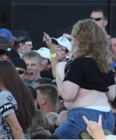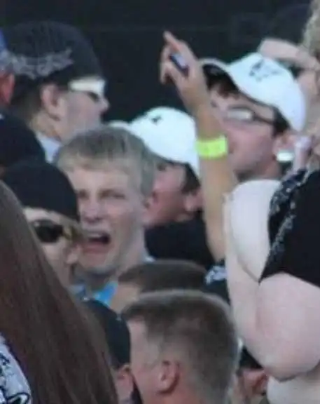 Я бы тоже испугался!) Какая то свиноподобная поклонница рока оголяет свои не эстетически восприимчивые прелести!! перекосило его конеш прикольно)