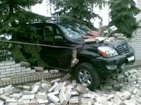 Кирпичную стену разнёс,А бампер почти целый!!!