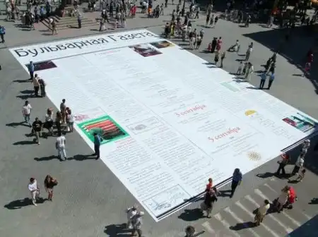 Бульварная газета на асфальте - это в Одессе на день города. Видно кусочек памятнику Дюку.