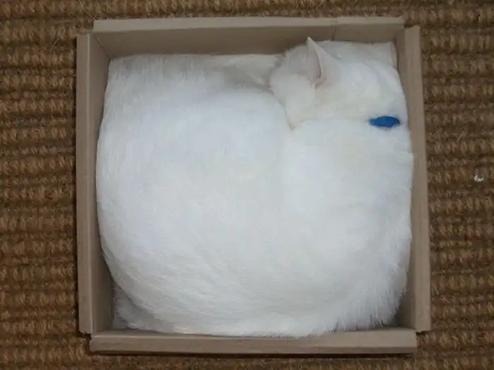 Самое поразительное-чем уже и меньше коробочка,тем коту удобнее.