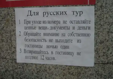 По мнению некоторых восточный национальностей, в частности, китайцев, угодить гостю их страны — значит писать всякие-разные надписи на его родном языке. Благодаря этой замечательной восточной традиции Рунет полон перлами китайского словотворчества. И, что особенно приятно, коллекция постоянно пополняется. Какой богатый урожай может собрать на Китайщине вооруженный фотоаппаратом гость!