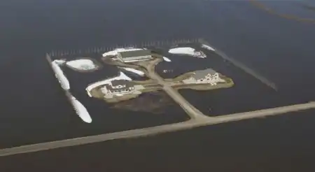 Высотой в 25 метров, диаметром 11 метров вмещает порядка 900,000 литров морской воды, и построен на 9 метровой высоты фундаменте.