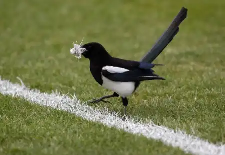 Сорока в восторге от крашеной травы на поле. Рядом играют Ливерпуль с Атлетико, но ей как-то все равно.
