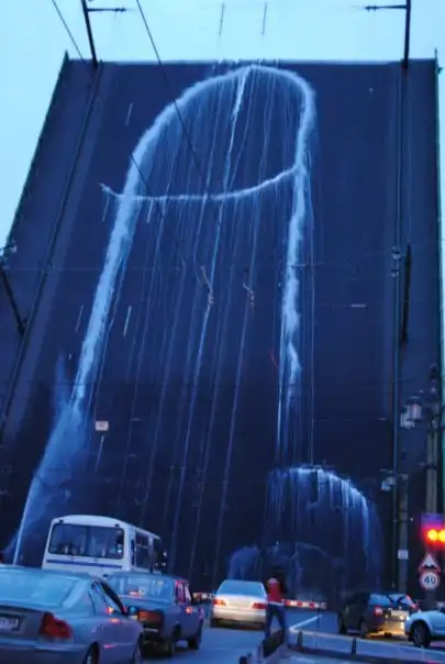 Какие-то “художники” изобразили на Литейном мосту в Питере огромный мужской орган.Вызвали две пожарных машины, чтобы смыть с асфальта их художество