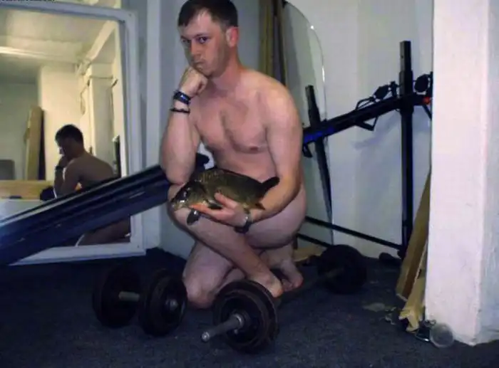 Парень с рыбой у тренажера!!!!!!Как таких долб... земля носит????