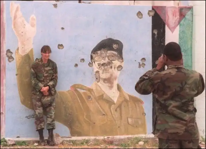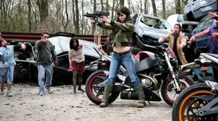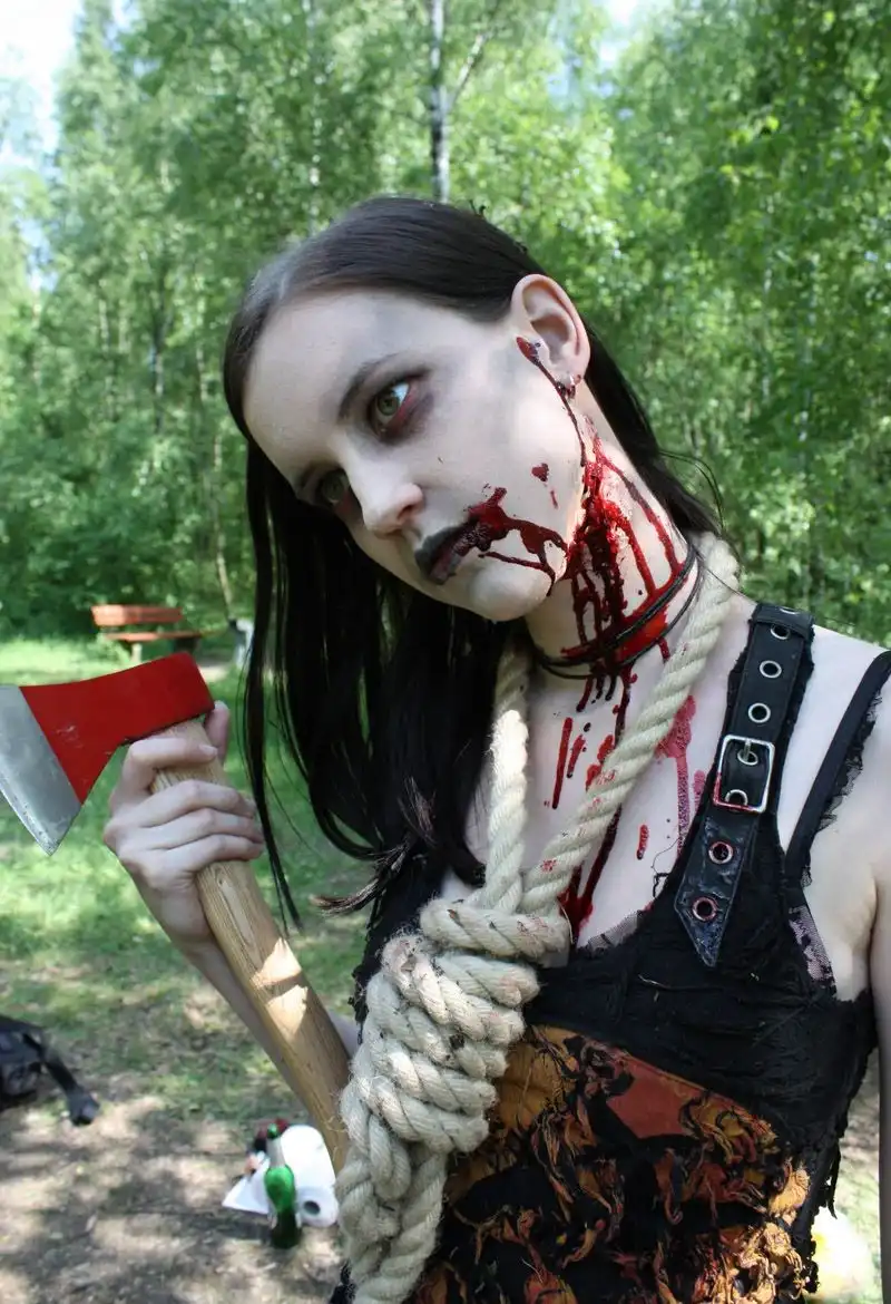 там где девушка с топором и в "крови" на заднем плане зачем то туалетная бумага и пиво