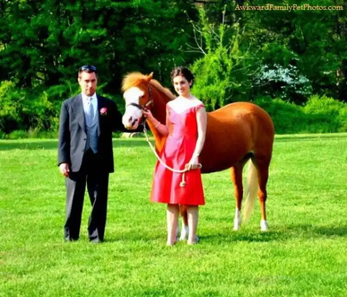 Что ненормального в том, что муж и жена фотографируются с лошадью, или дама со своей любимой собакой etc? Тем более в нормальных позах, обычное семейное фото.
