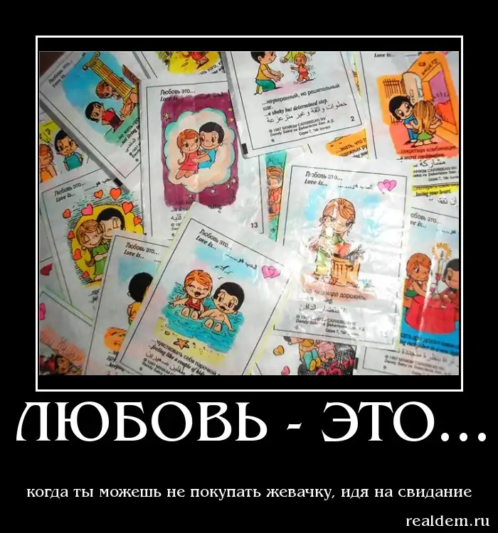 "Любовь это... когда можешь не покупать жвачку перед свиданием" - полная глупость, не согласен!!! Орфография хромает, это да...