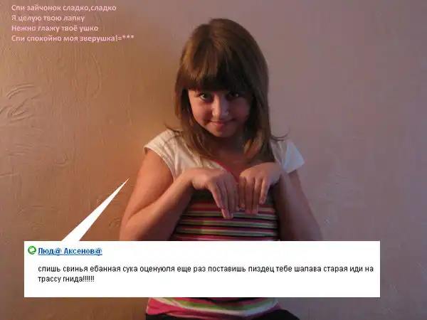 Боже, на фотках та маленькая девочка такая милая вроде..прочитала ответ - афигела...