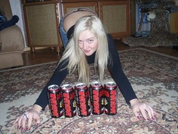 23. Поза "С Ягой" (алкогольный коктейль "Ягуар" - всенародно любимый напиток, спрашивайте в ближайшей палатке). После такой фотографии мужчина ваш.