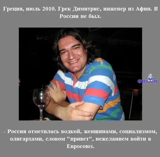 Ну насчет неухоженности он прав. Однако это не делает наших женщин не красивыми, а предает изюминку. А вот я обьявляю конкурс "Кто раскажет о Америке?". А ведь не думаю что ктото скажет больше чем толстяки, статуя свободы, макдонольдц, президент - негр, тупые (Хотя это под вопросом) и то, что они нам завидуют (А вот в этом не сомневаюсь).