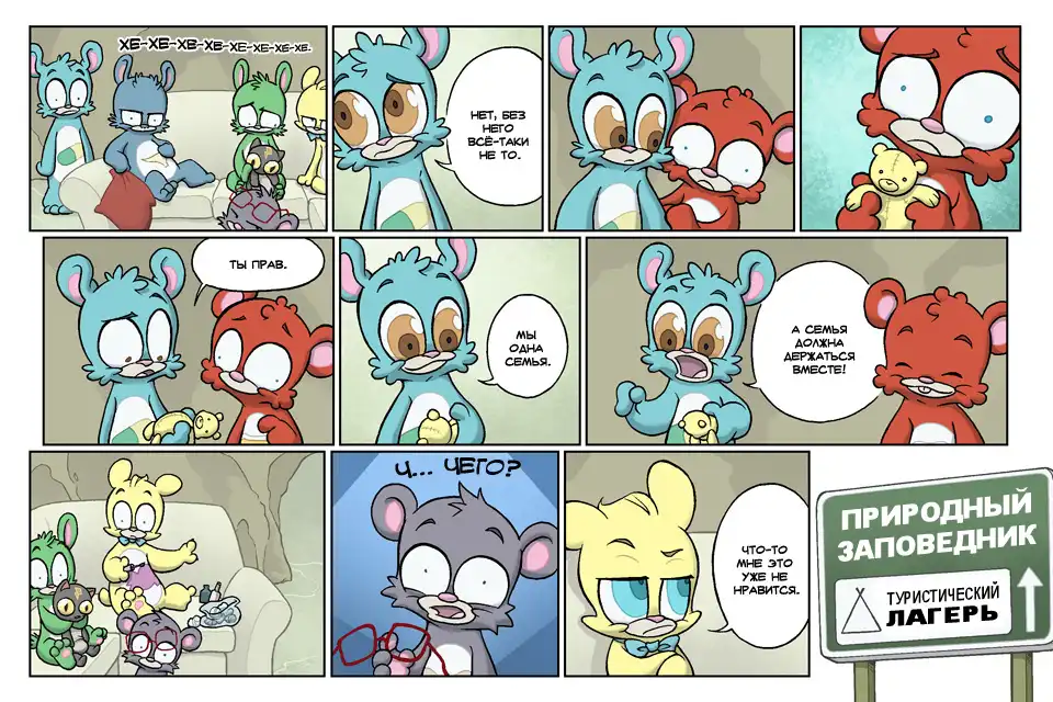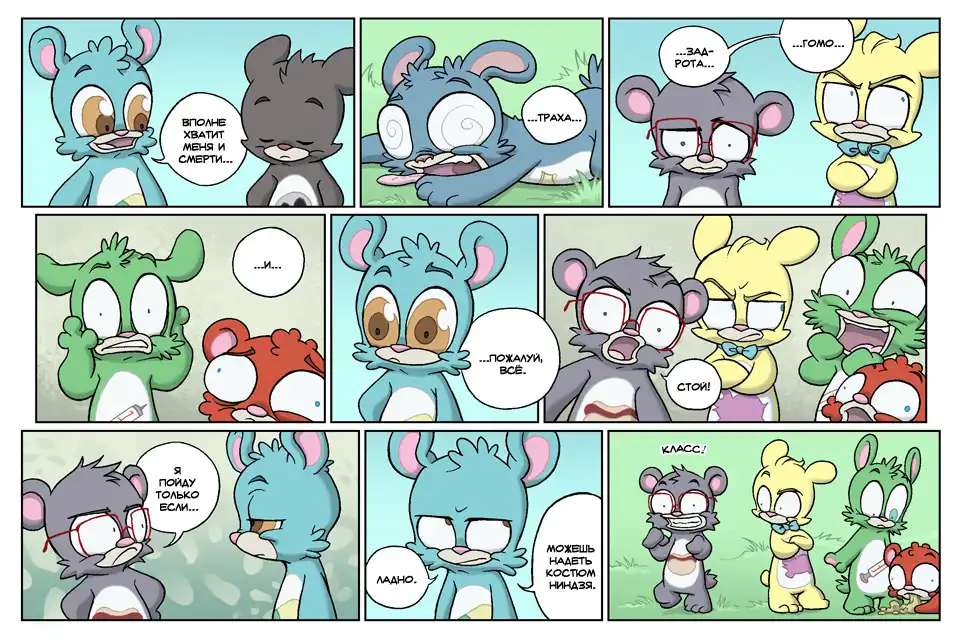 Пародия на «Заботливых мишек», местами со слегка чёрным юмором.