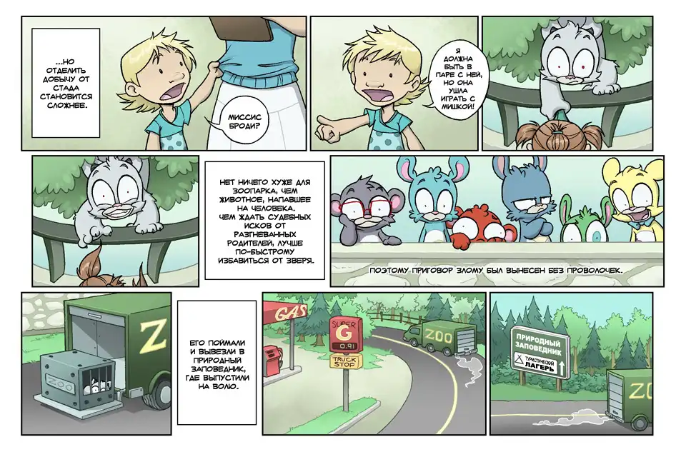 Медведи - один из самых крупных экспонатов зоопарка, не по размеру самих мишек, но по количеству обитателей в вольере. Они привлекают внимание людей... и не слишком этому радуются. Взрослые тупо пялятся на них, дети издеваются, а обстановка накаляется. Странно, что они ещё не поубивали друг друга...