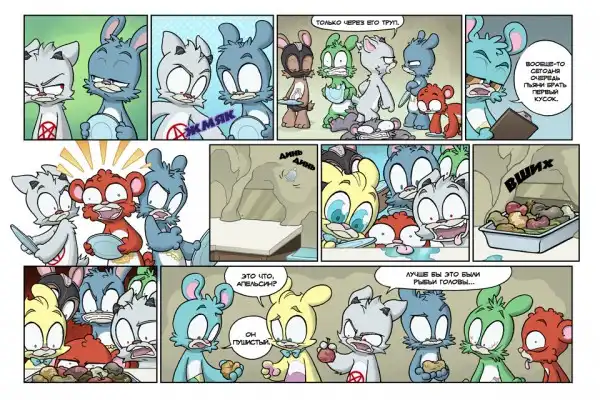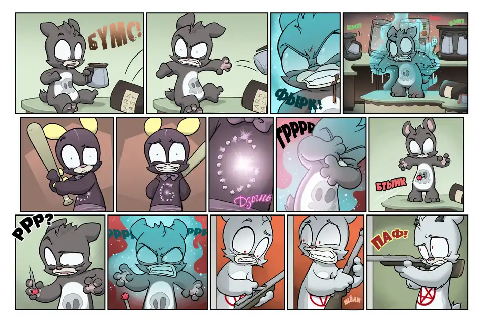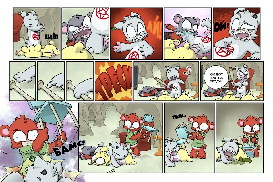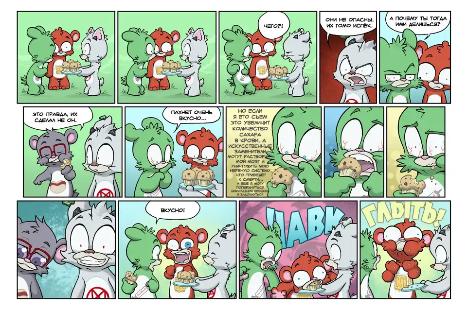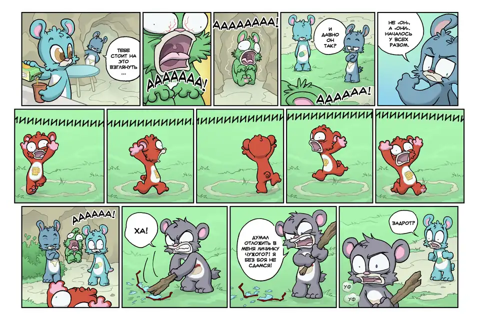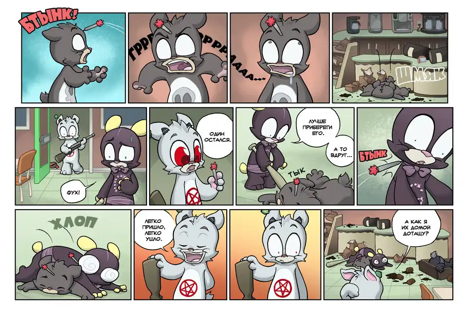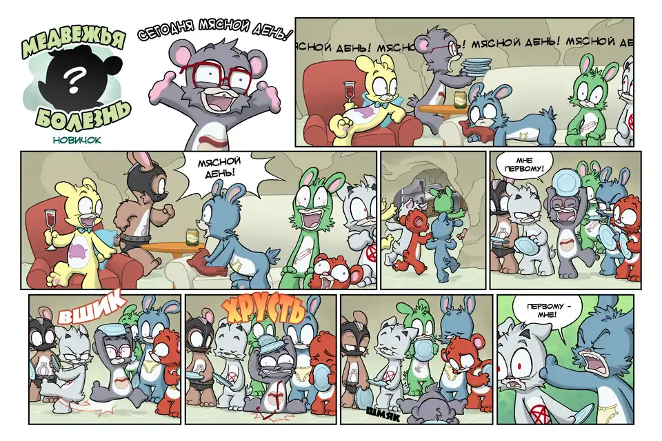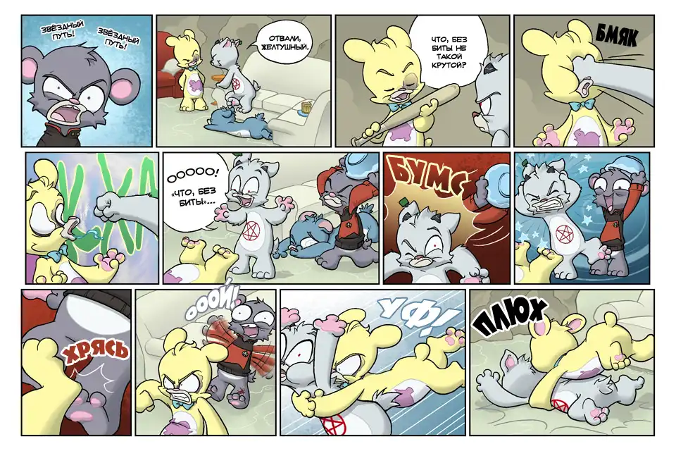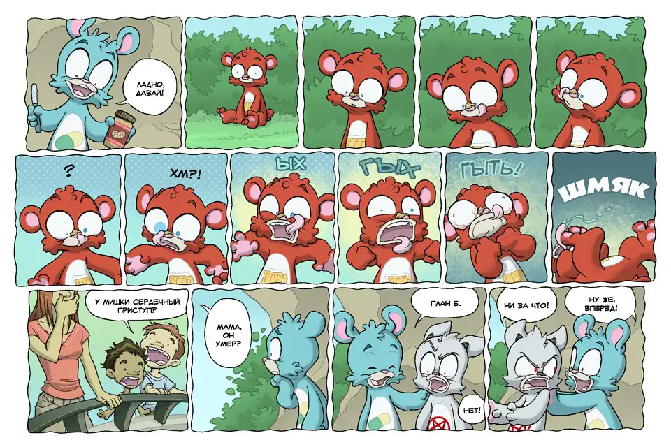 Пародия на «Заботливых мишек», местами со слегка чёрным юмором
