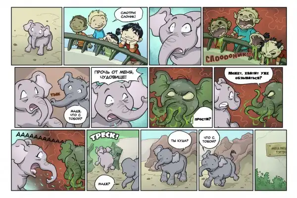 Медведи - один из самых крупных экспонатов зоопарка, не по размеру самих мишек, но по количеству обитателей в вольере. Они привлекают внимание людей... и не слишком этому радуются. Взрослые тупо пялятся на них, дети издеваются, а обстановка накаляется. Странно, что они ещё не поубивали друг друга...