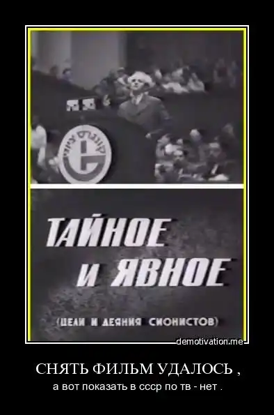 "Тайное и явное" хороший фильм,единственный и очень большой минус этого фильма то что он рассматривает сионизм с позиции марксизма но любой здравомыслящий человек знает что марксизм это младший брат сионизма,а так вполне добротный советский документальный фильм.Кто не смотрел посмотрите.