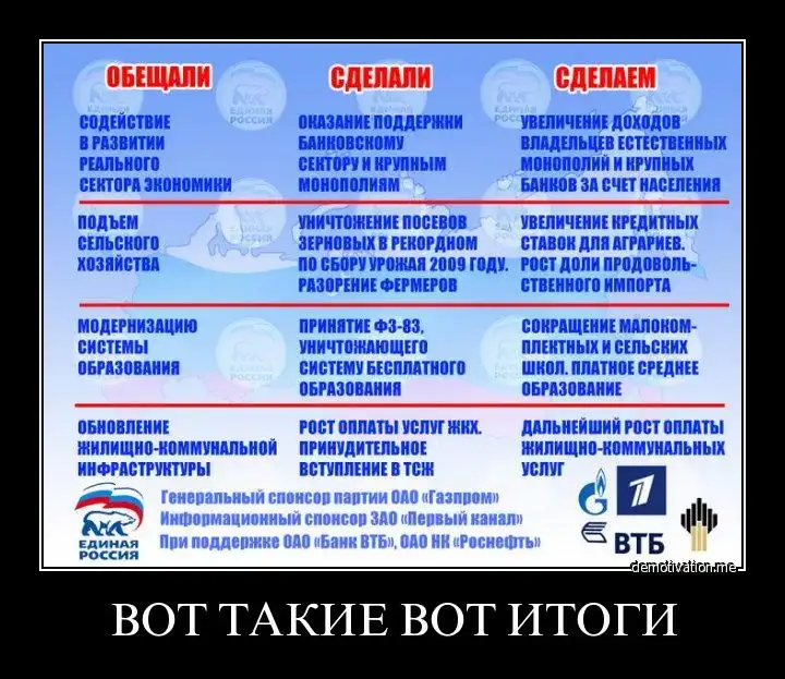 как время к выборам так они начинают решать насущные проблемы - ПИАР. Только слепой не может видеть того что в стране творится, если даже жети которые тут отписывают это понимают то что говорить о взрослом поколении. Кому как не медведям и питиным знать как нужно действовать в стране особенно путину - военному челу. Со своей лояльностью - угрохали страну. что изменилось с 2000 года когда путин стал таки презиком!? Что изменилось за последние 3 года Медведковского правлеия. Пора уже бы проснуться от обещаний. Как в Томске было на мусорках написано "Для предвыборных обещаний". Другое дело нет выраженного, явного лидера, который бы смог за собой повести народ российский.