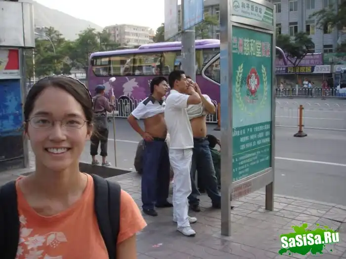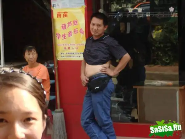 Как оказалось, закатывать футболку теперь очень модно. Надеюсь, это новшество коснулось только Китая.