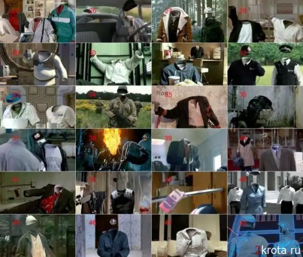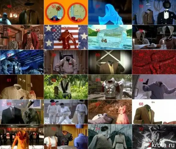 Задача осложняется тем, что актеры превращены с помощью фотошопа в невидимок. Картинки кликабельны. Ответы писать в комментариях.