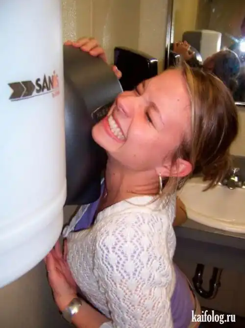 Сушка для рук весит практически в каждом общественном туалете, но многие любят пользоваться сушкой не по назначению. Некоторые сушат под ней голову, некоторые ноги итд. Я один раз видела, как мужик сушил под ней деньги, видать в унитаз уранил, когда ходил по нужде. А еще есть такие люди, которые любят просто прикалываться с сушкой и фотать свои надутые лица. :)