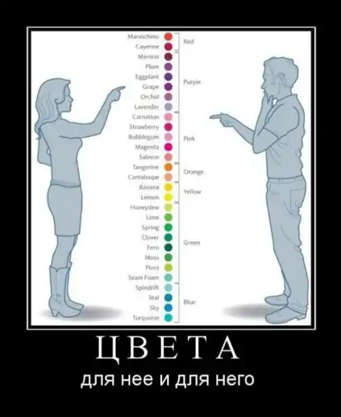 Про цвета-абсолютная правда))))) Мужчине невозможно доказать,что купила плащ цвета фуксии (!), а не "опять розовый"
