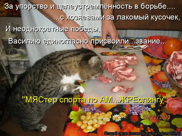 Забавные. Радует то, что мало котоматриц про сосиски и колбасу, а то они уже в горле сидят =(